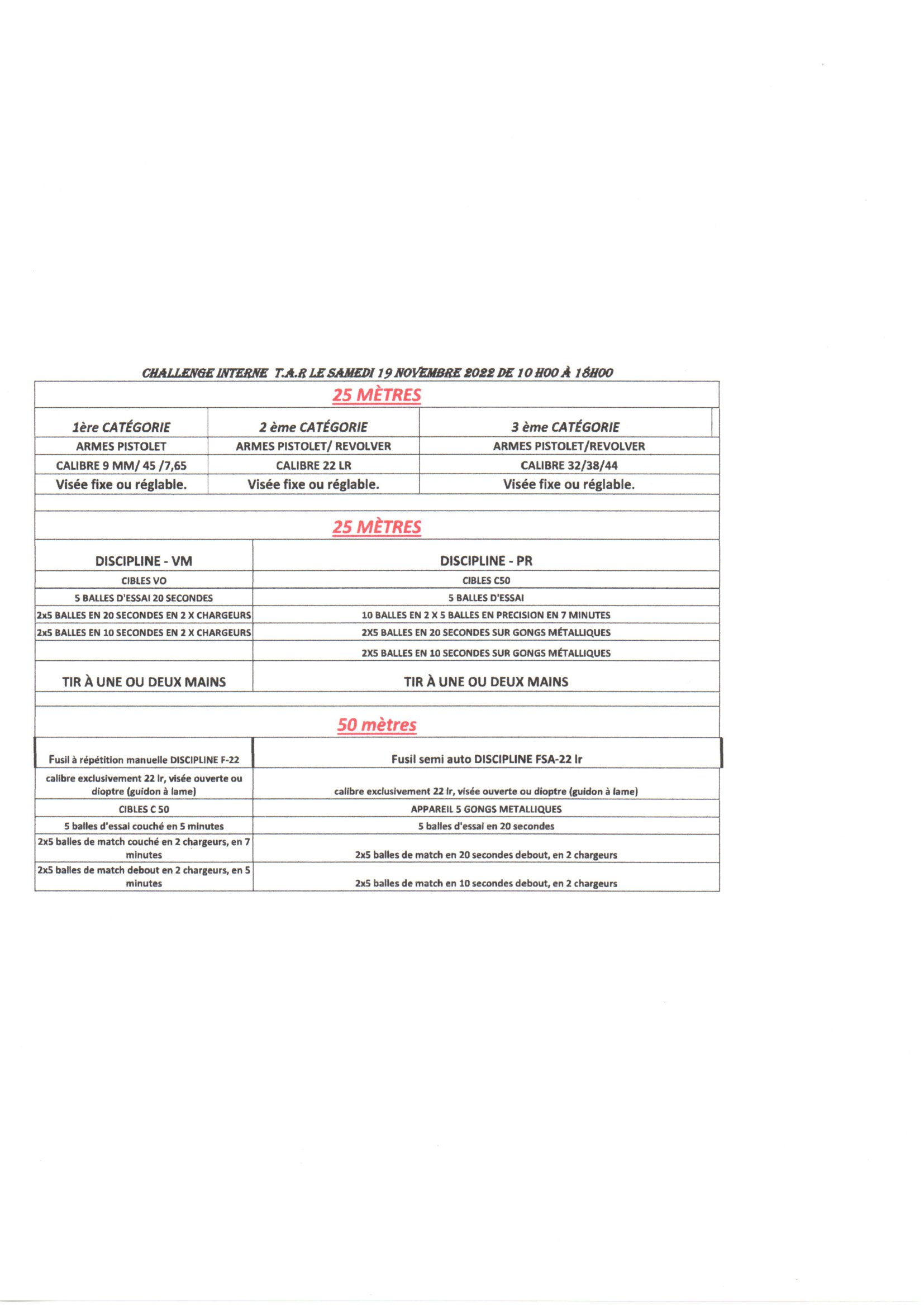 Nous organisons un challenge interne T.A.R le samedi 19 Novembre de 10h00 à 18h00
