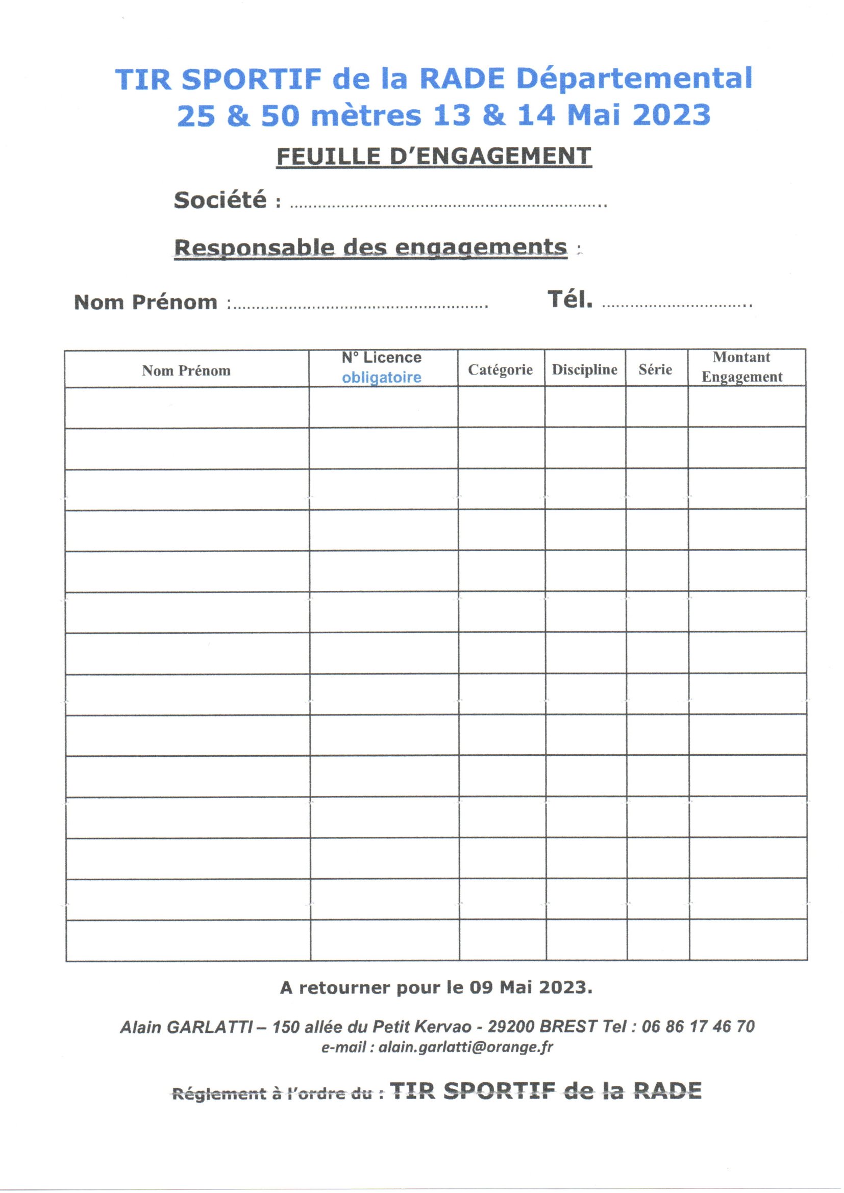 pour les tireurs qui s'incrivent aux departementaux 25-50 m.