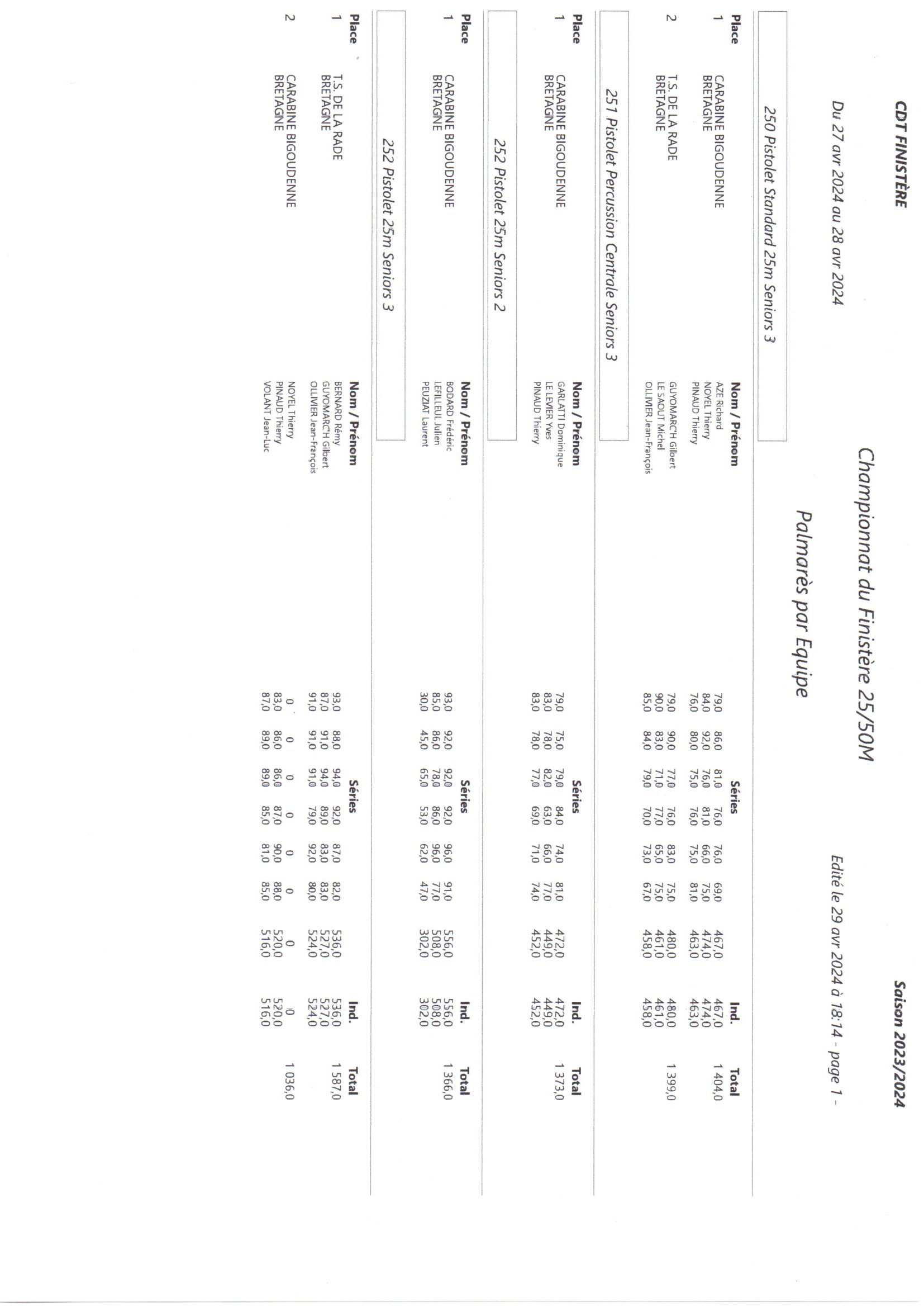Palmarès par équipe feuille 2