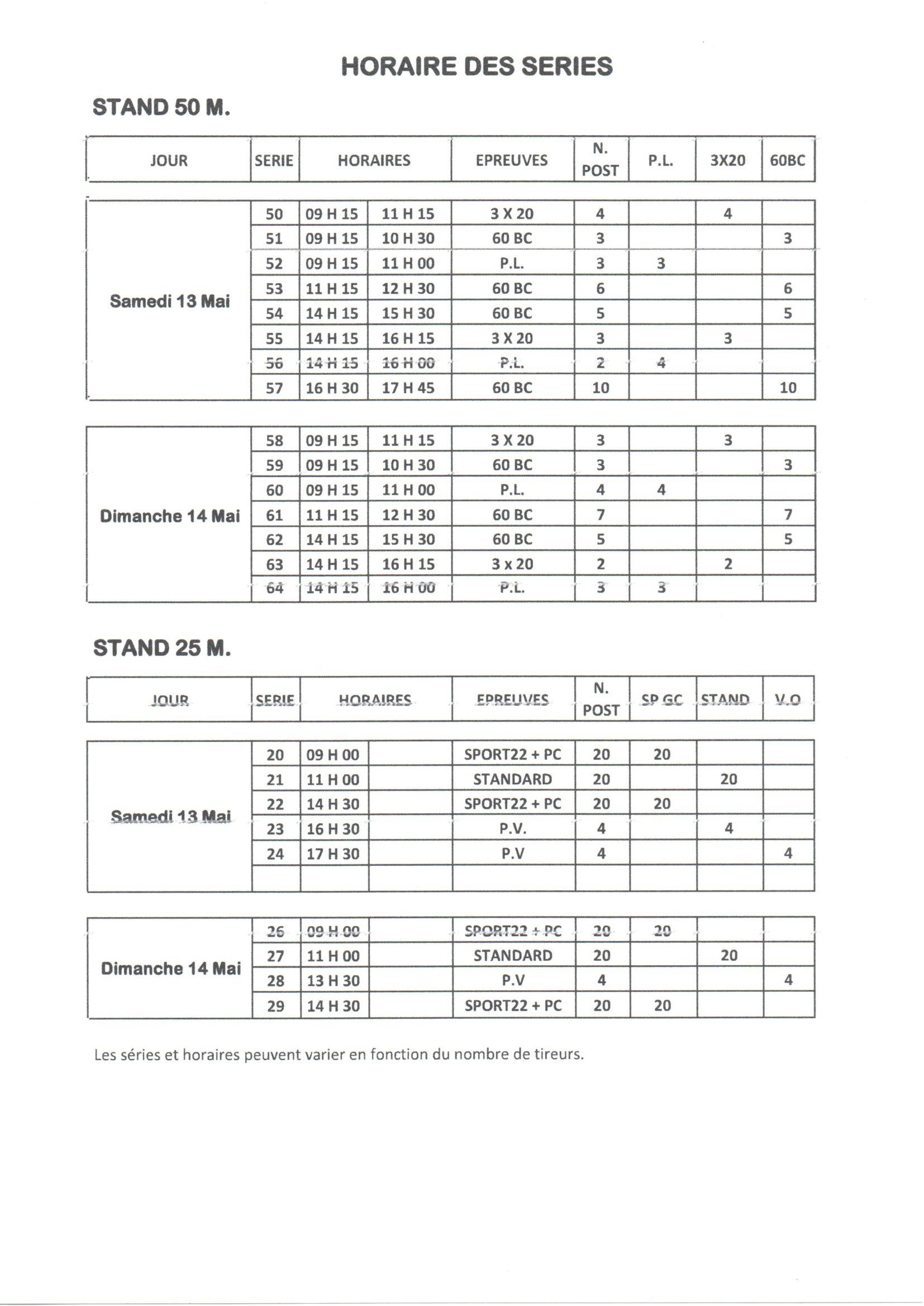 HORAIRES DES SERIES