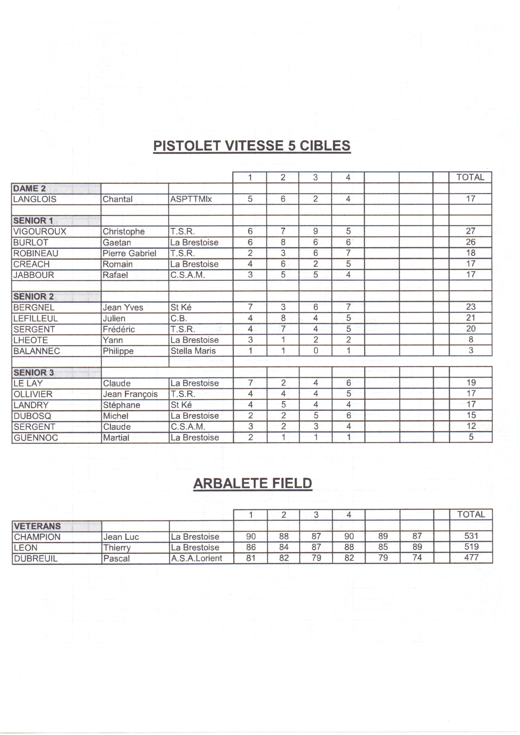 Ci joint le résultat du 5ème tour de la Coupe du Finistère avec les résultats du Challenge de La Brestoise