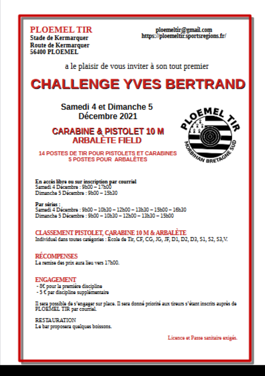 Challenge YVES BERTRAND PLOEMEL tir le samedi 4 et dimanche 5 décembre
