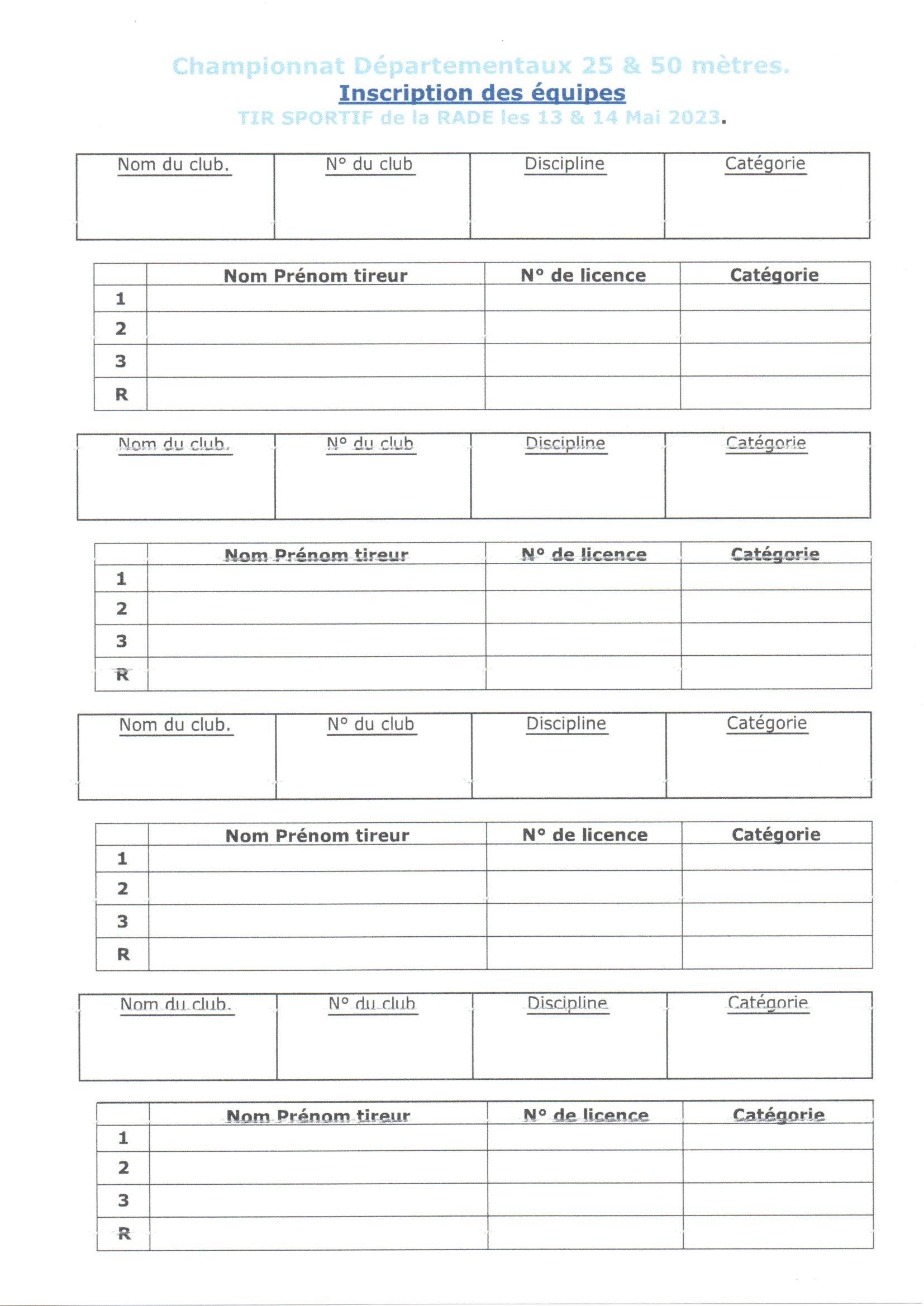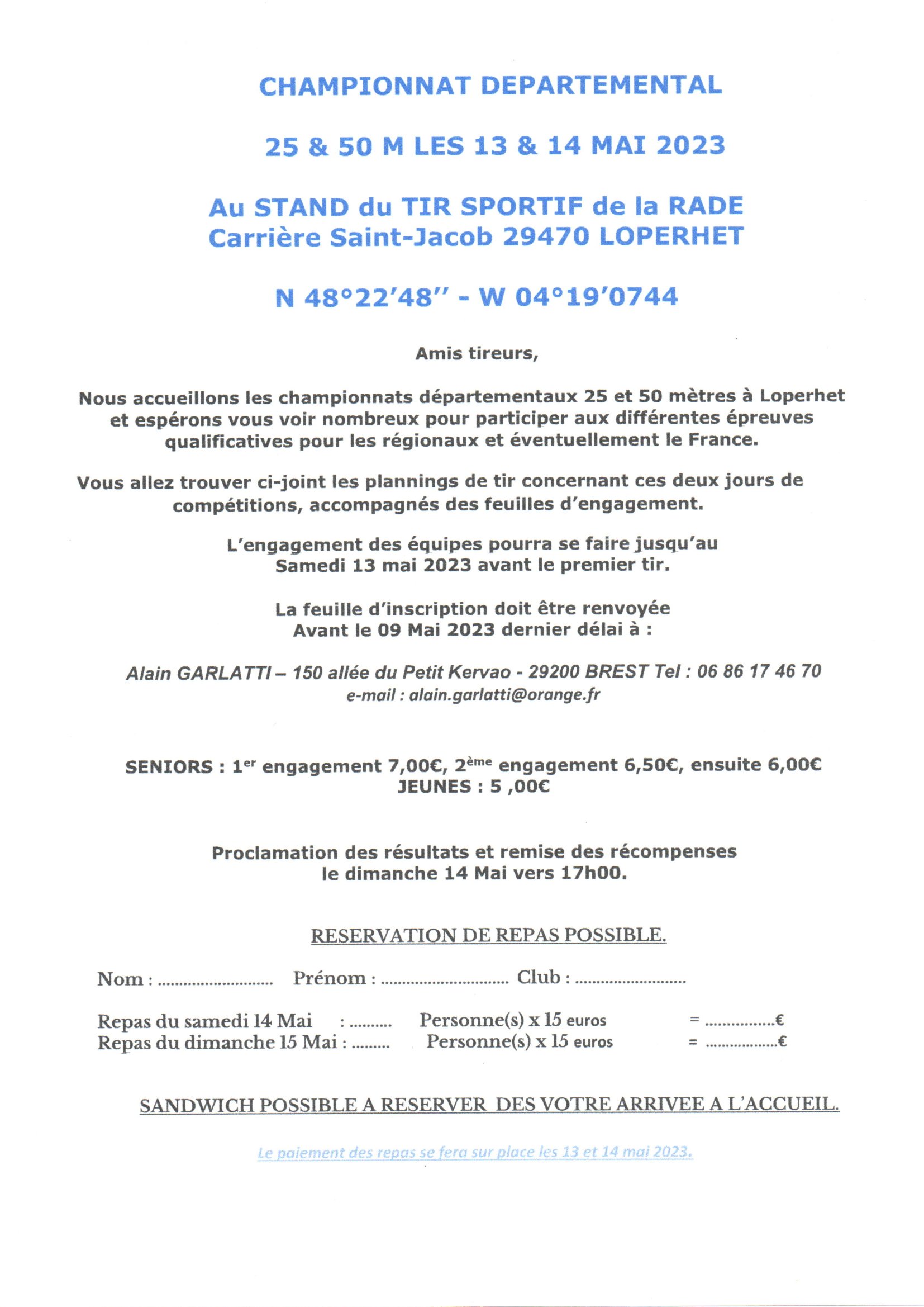 pour les tireurs qui s'incrivent aux departementaux 25-50 m.