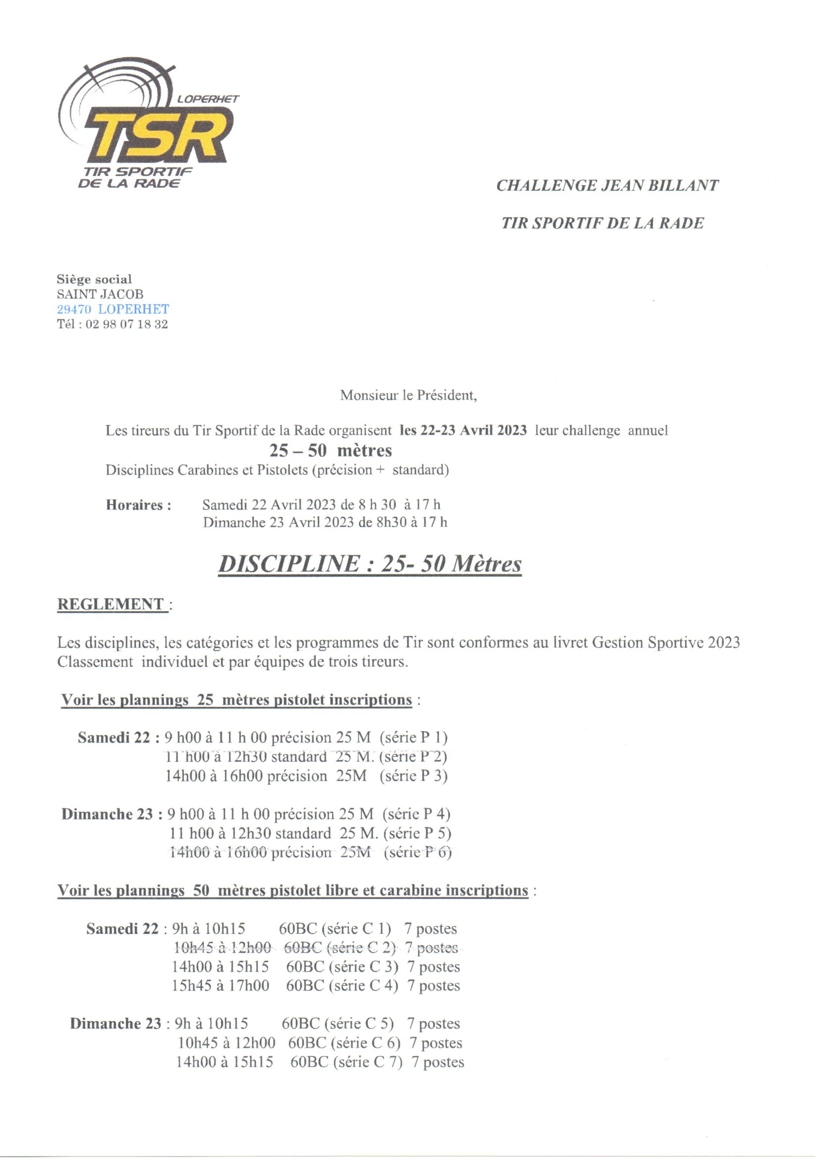 Je vous fais parvenir l'invitation du challenge 25- 50 Métres