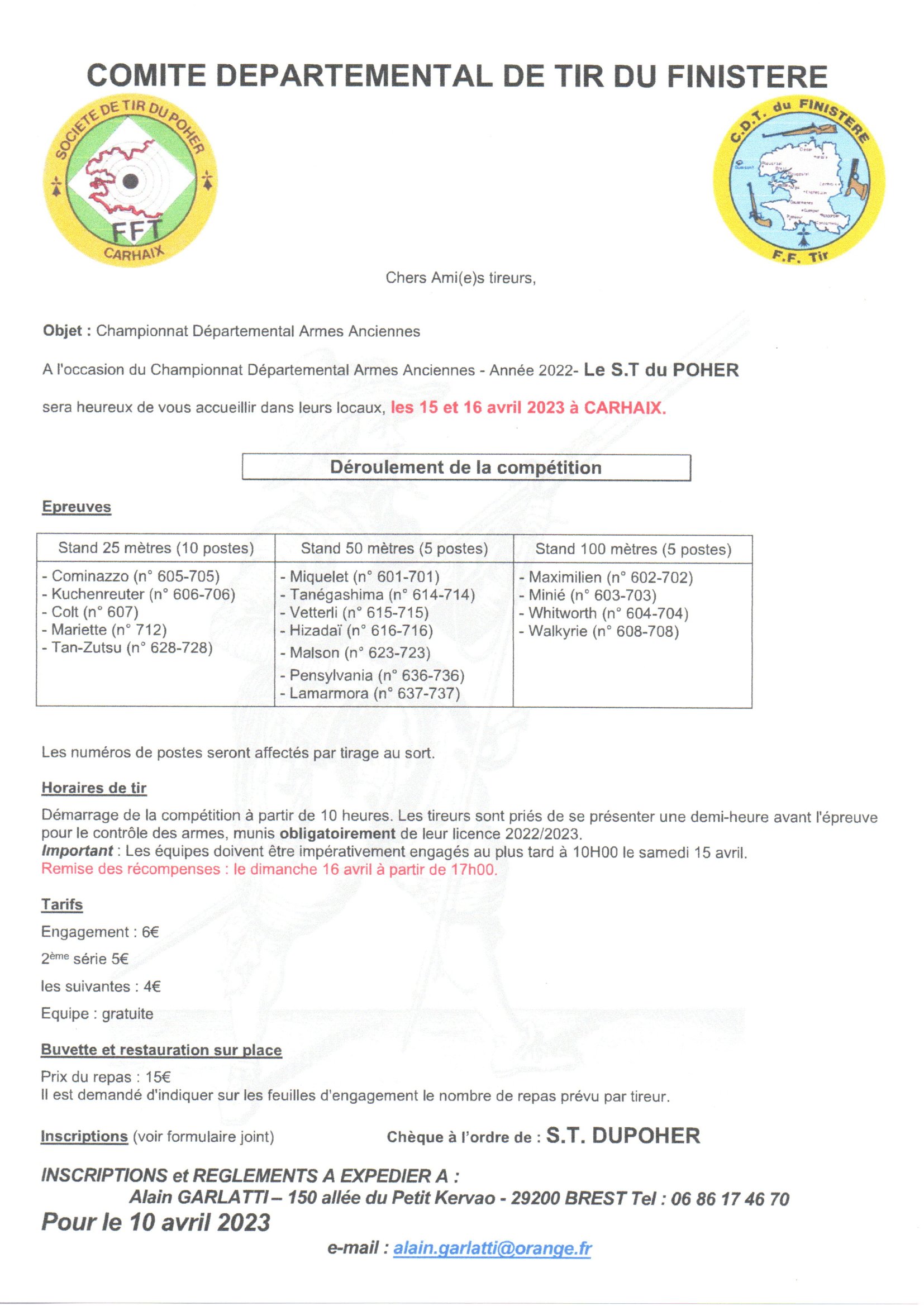 Lire la suite : Départemental armes anciennes les 15/16 avril CARHAIX