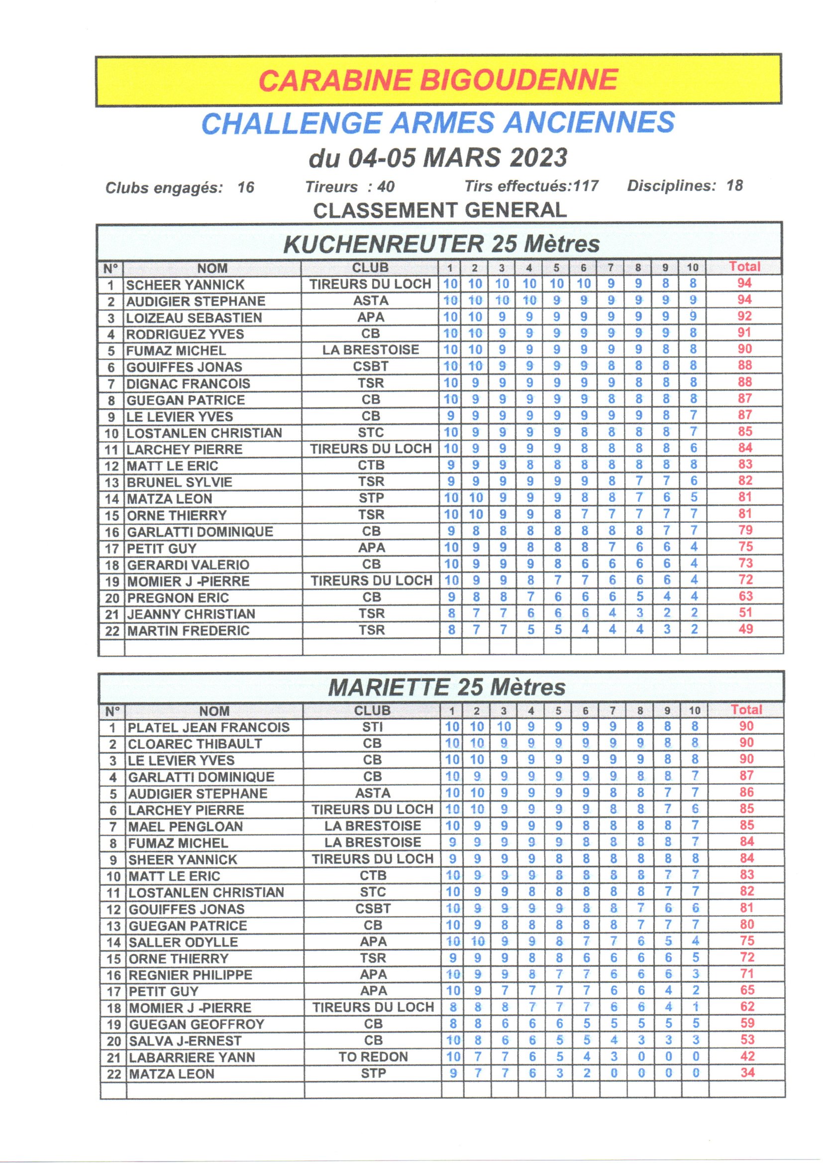 ci joint palmarès de notre challenge aux armes anciennes Guy Vassard 2023